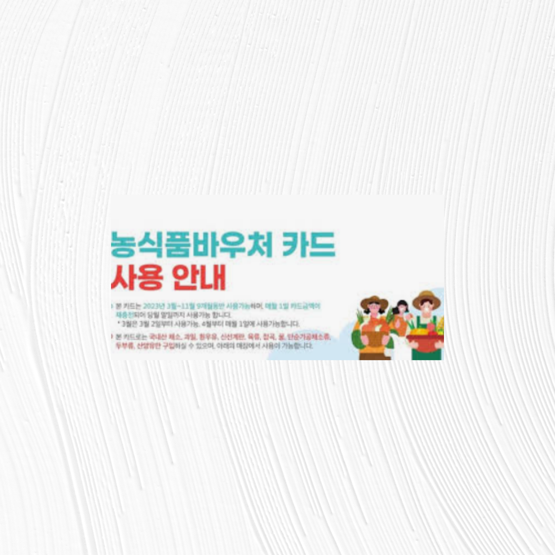 - 기존의 식품 지원 사업과는 달리 바우처 형태로 직접 사용할 수 있어 선택의 폭이 넓습니다.